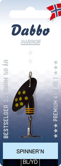 Dabbo Spinner-n Original Sort med gule prikker – Effektiv og lettkastet spinner